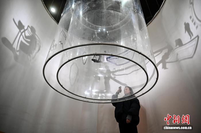 1月7日,山西太本晋阳古乡考古专物馆,公众观光考古光影殊效。中新社记者 韦明 摄
